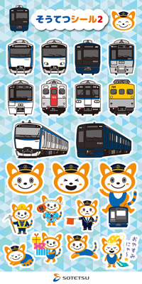 (6)相鉄の各種電車や相模鉄道キャラクター「そうにゃん」の様々な表情をデザインしたプクプクシール。