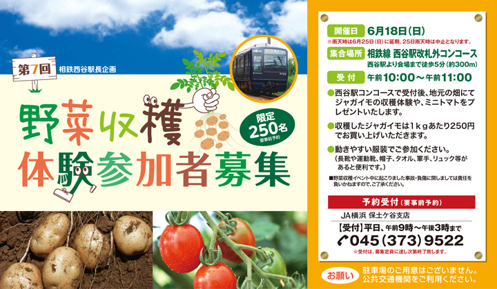 「相鉄西谷駅長企画 第7回野菜収穫体験イベント」開催のご案内